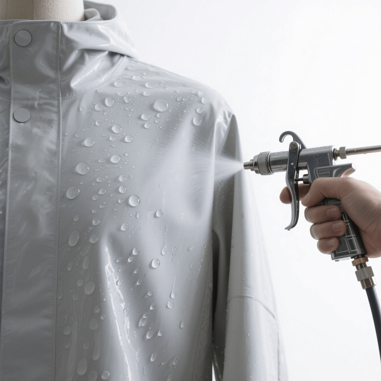 Polymer layers (PU/TPU) or membranes (ePTFE) repel water on outdoor/activewear. Basic coatings are affordable, high-tech like Gore-Tex costly; spraying is easy, lamination complex (balances water resistance and breathability).